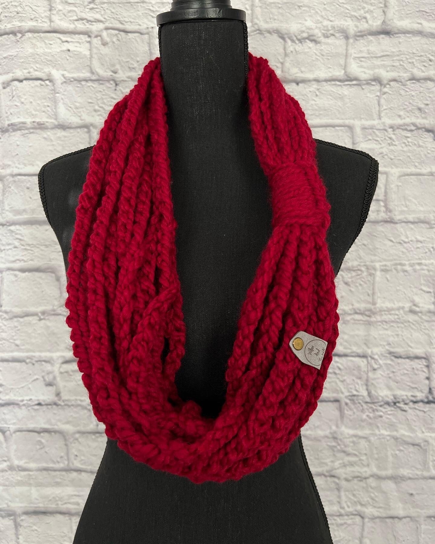 Cranberry Red Women's Braided Chain Scarf | Ruby Red Braided Cowl | Women's Crochet Accent Scarf | Valentines Day Scarf