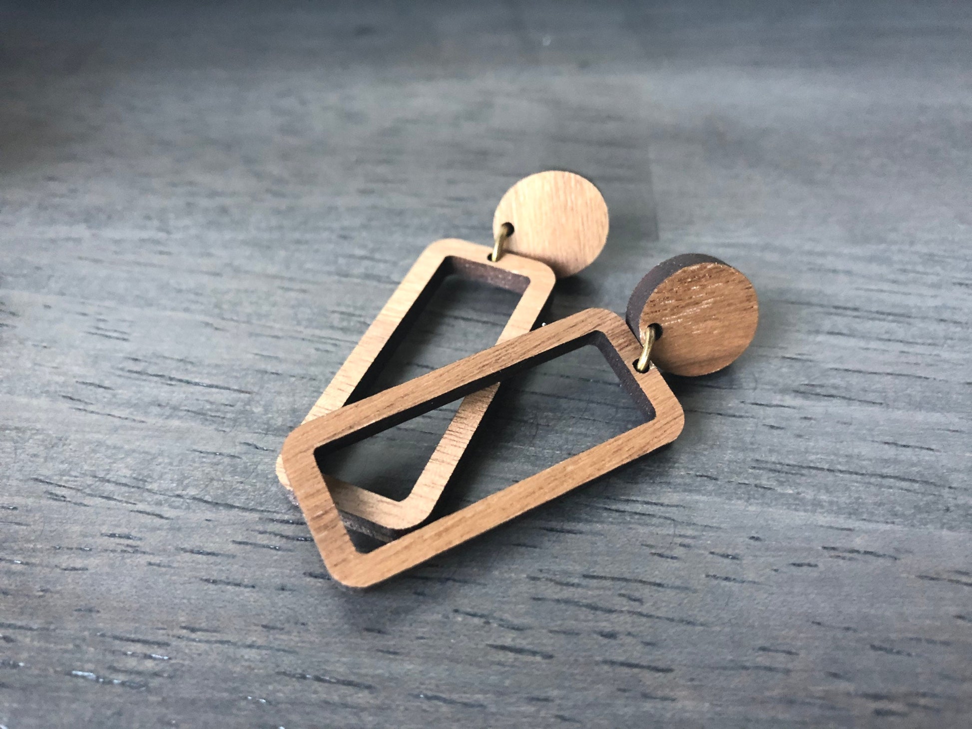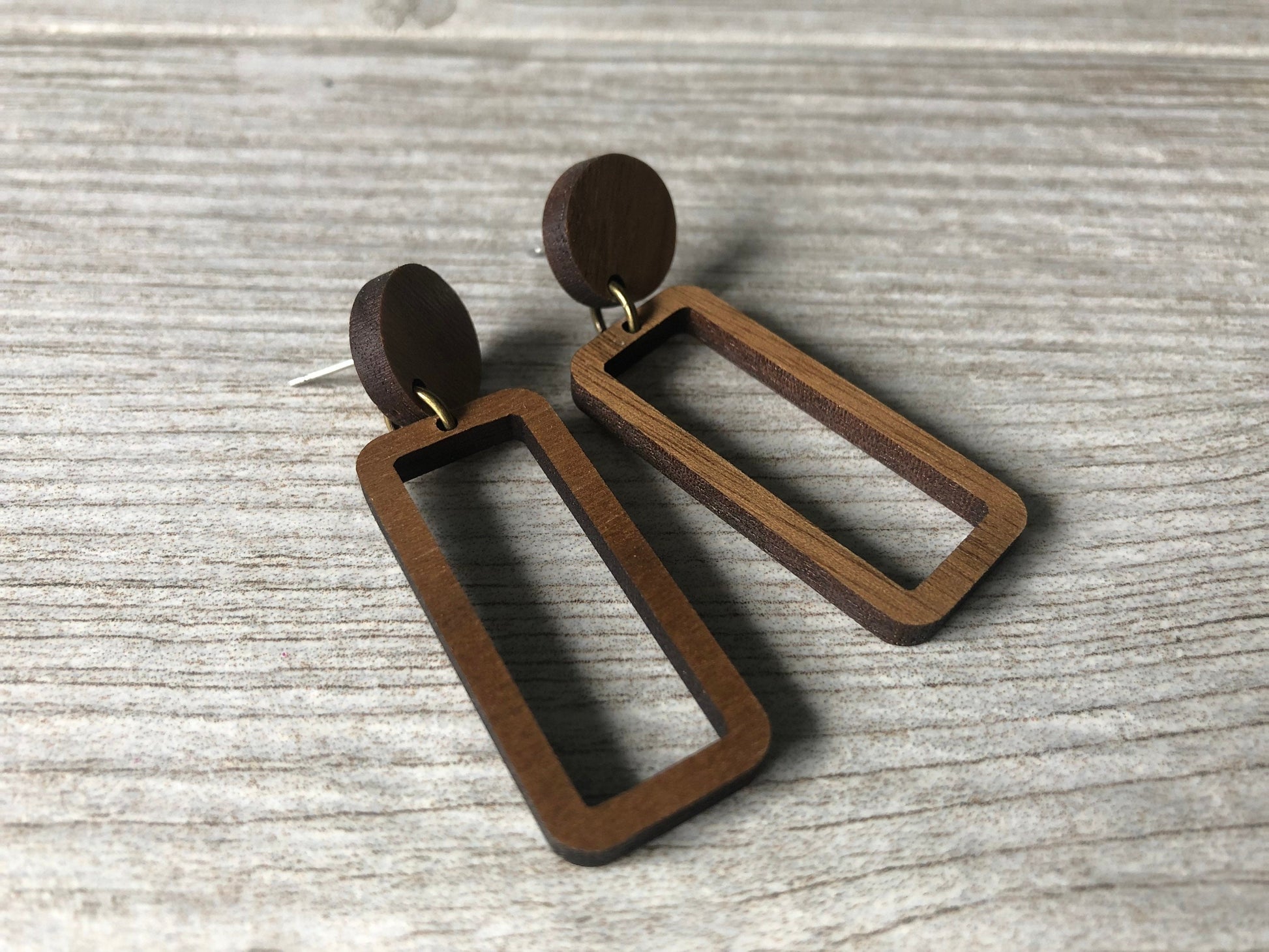 A wooden circle stud and a hollow rectangle to make the perfect earring!